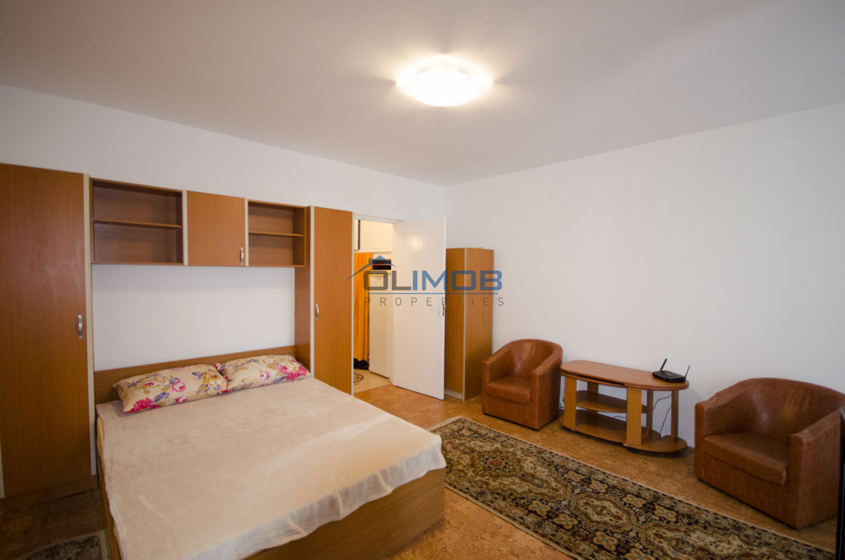 Garsoniera dispune de un spațiu bine compartimentat, luminos și aerisit, oferind un ambient confortabil și funcțional. Mobilierul este modern și practic, iar dotările includ electrocasnicele necesare pentru un trai confortabil.