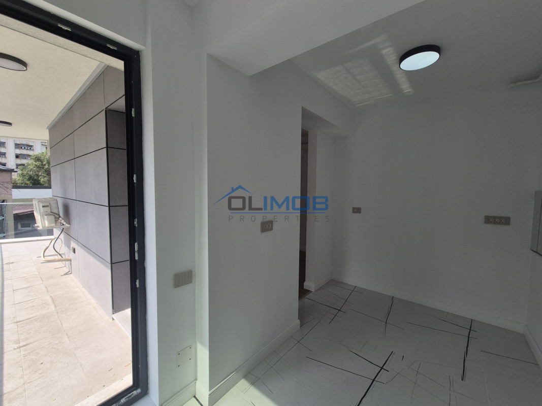 Bucătărie semideschisă, modernă, cu posibilitate de închidere pentru mai multă intimidate si access in balcon;