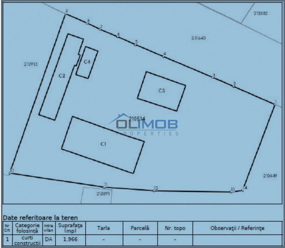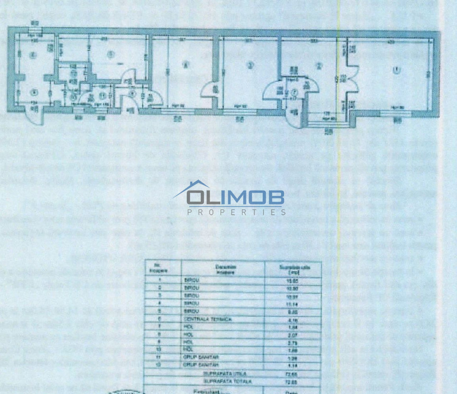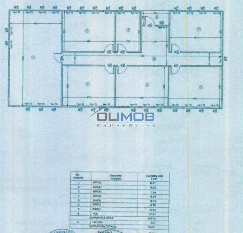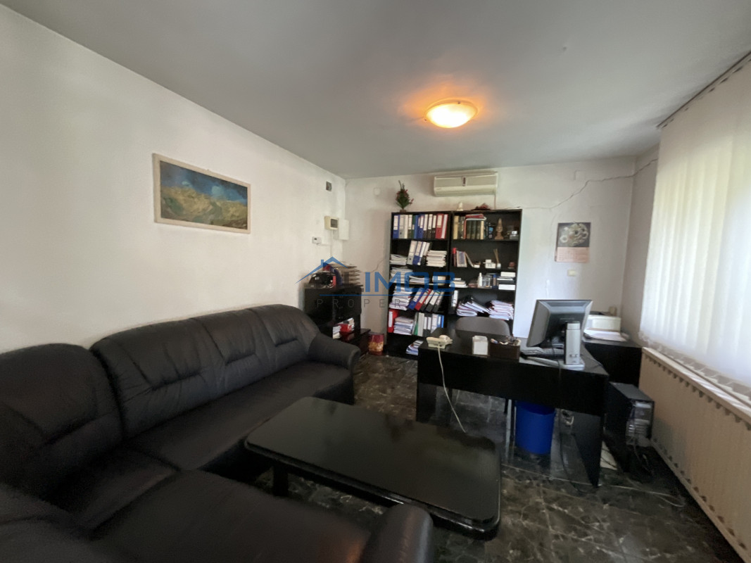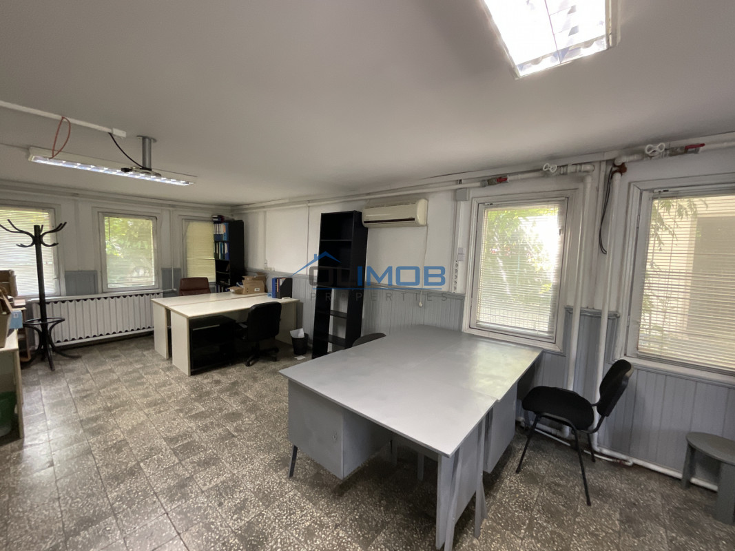 Clădire birouri – 166 mp: situată pe parter, compusă din 6 camere, spațiu tehnic și grup sanitar.
